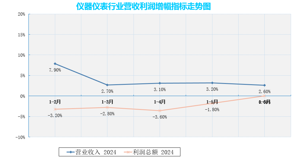27日,国家统计局发布最新数据,1—6月份,仪器仪表制造业营业收入4698.9亿元,同比增长2.6%,实现利润总额447.4亿元,同比“零增长”(1-5月利润总额同比增幅为-1.8%)。