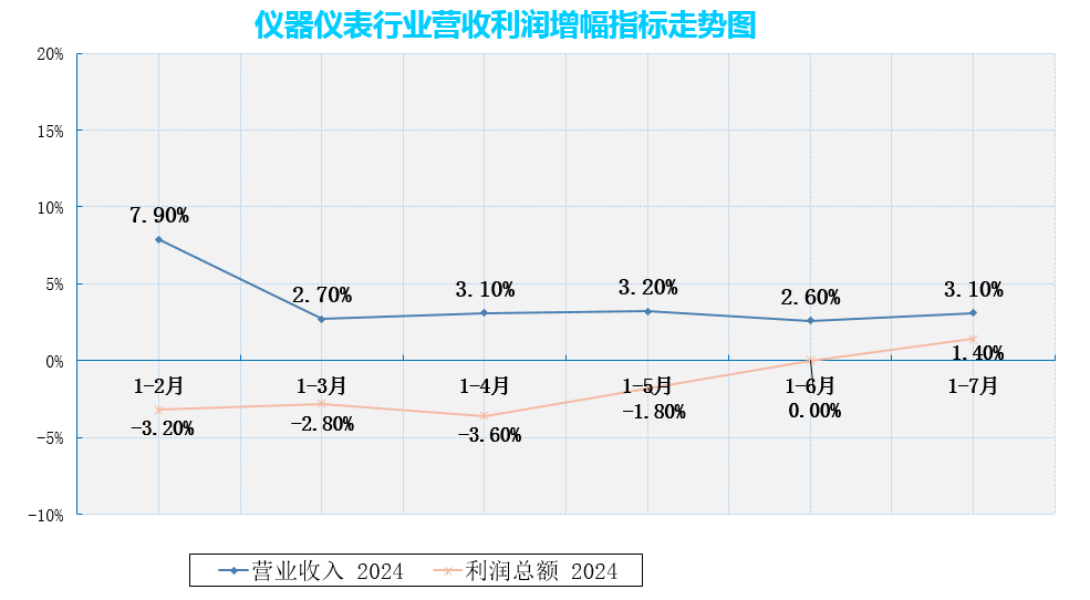 国家统计局发布最新数据,1—7月份,仪器仪表制造业营业收入5527.3亿元,同比增长3.1%,实现利润总额533.3亿元,同比增长1.4%(1-6月利润总额同比增幅为0%),整体而言,仪器仪表制造业企业利润有所改善。
