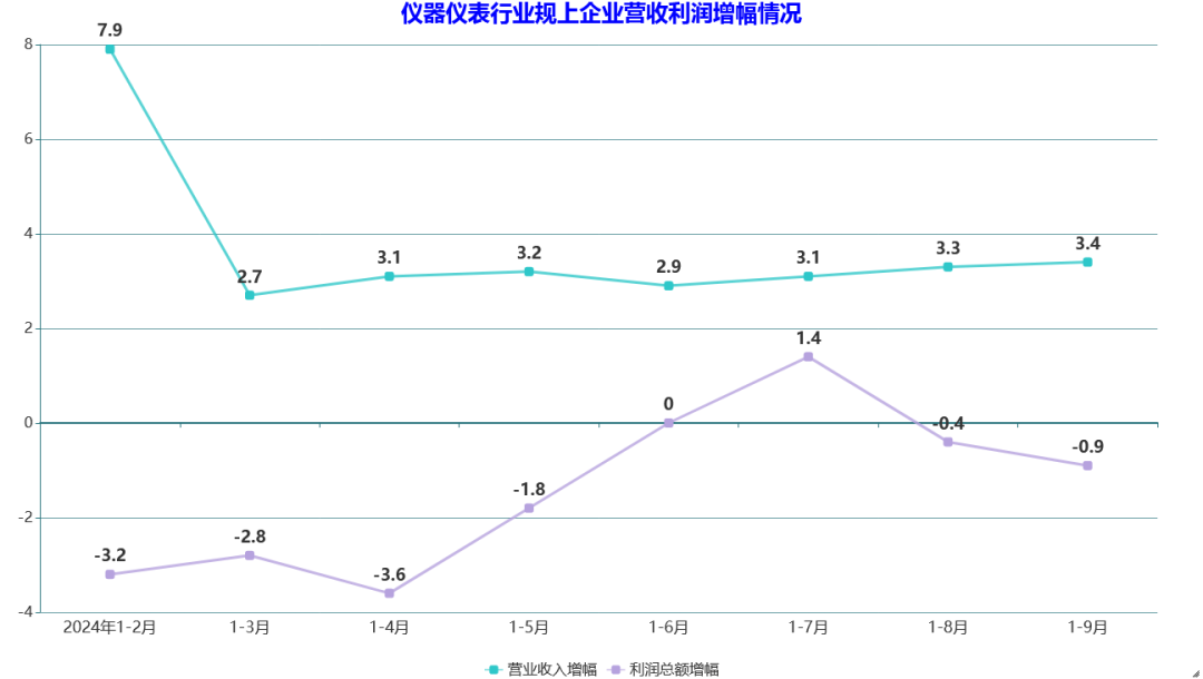 国家统计局发布最新数据,1—9月份,仪器仪表制造业营业收入7341.8亿元,同比增长3.4%,实现利润总额714.4亿元,同比下降0.9%。